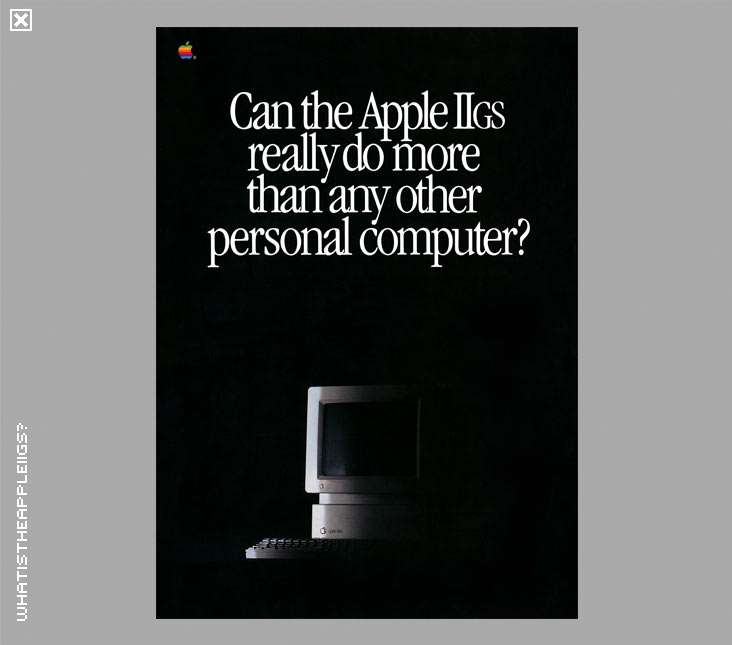But the Apple IIGS should have been, but was for too few Apple II users at the time of its release in 1986, the pinnacle of personal computing. It was the latest Apple II, a series of computer that spawned the POPULAR personal computing revolution. Such an accolade should not be taken lightly, especially as we enter the second coming of the PC revolution with consumers clamouring to buy a computer to access the Internet, the result of which is that the computing industry is now undeniably one of the biggest in the world.
